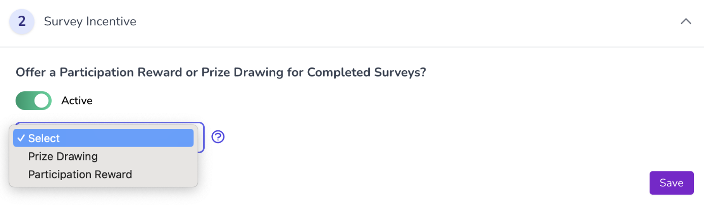 Next, consider creating an incentive to boost participation in your survey. We've integrated incentive options such as a Prize Drawing or a Participation Award.![]()